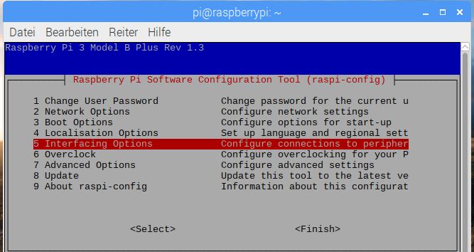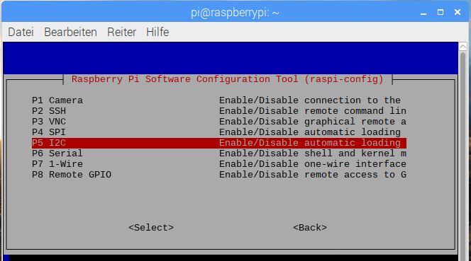 Da die I2C- Schnittstelle auf dem Raspberry Pi standardmäßig deaktiviert ist, muss diese aktiviert werden, sofern es noch nicht geschehen ist: