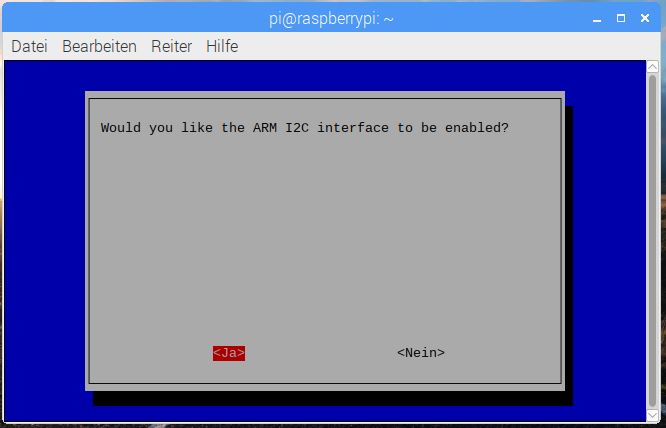 I2C- Schnittstelle aktivieren? -> Ja