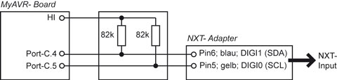 Daten über I2C (TWI- Hardwaremodul) zwischen AVR- Mikrocontroller und Lego mindstorms NXT senden/ empfangen.