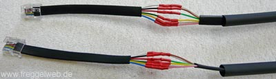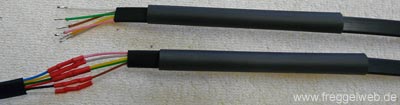 - Schrumpfschlauch über abgemantelte Stellen schieben und erhitzen