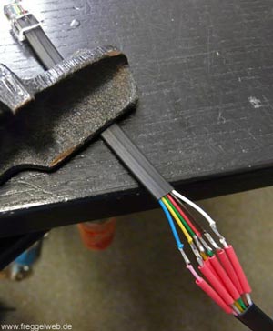 - 6- Adriges Telefonkabel abmanteln und abisolieren