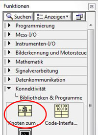 - Funktionen --> Konnektivität --> Bibliotheken und Programme --> Knoten zum Aufruf externer Bibliotheken einfügen
