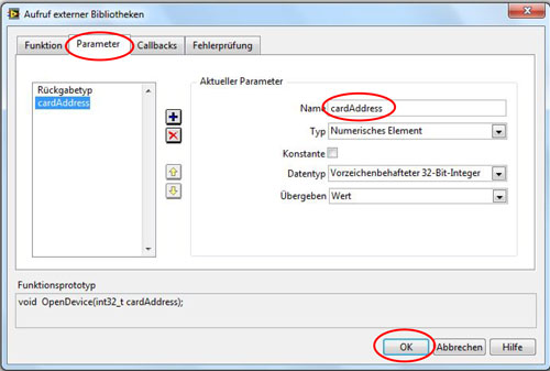OpenDevice(long CardAddress)z.B. arg1 oder CardAddress etc. Vorzeichenbehafteter 32- Bit Integer