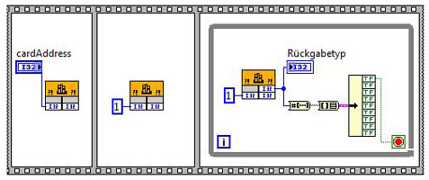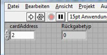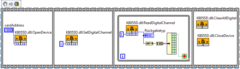 - ansprechen der Karte über CLF- Knoten (Knoten zum Aufruf externer Bibliotheken); Ruft eine dll- Funktion direkt auf