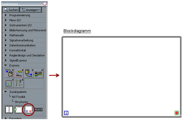 - aus Funktionenpalette in Blockdiagramm einfügen