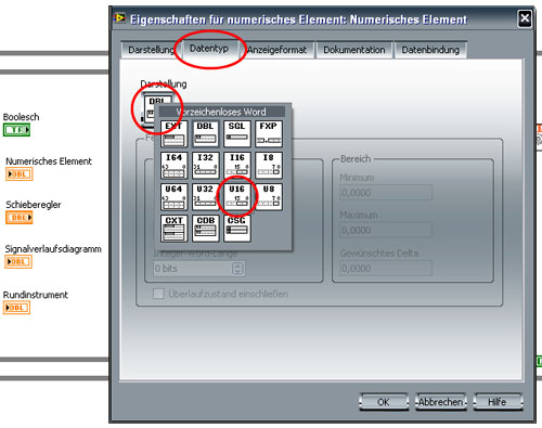 - auf "Rundinstrument" rechte Maustaste --> Eigenschaften --> Datentyp --> Darstellung --> U16