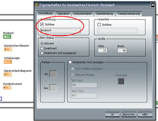 kein Haken bei Sichtbar --> in Frontpanel keine Beschriftung - Verbindungen erstellen
