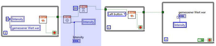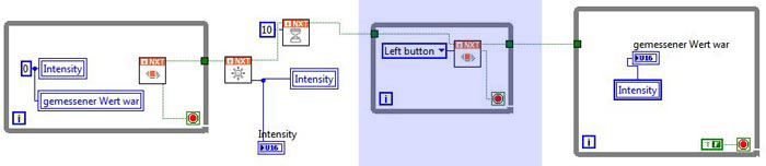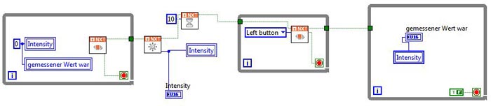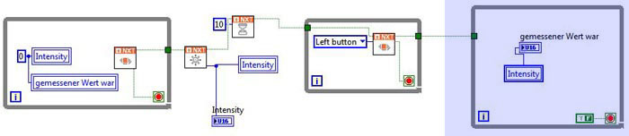 - Lokale Variablen "Intensity" und "gemessener Wert war" werden auf Null gesetzt. (beide Variablen stehen auf "schreiben".)