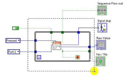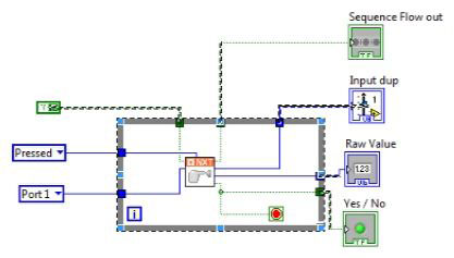 - Sub VI "wait Taster" aus Funktionenpallette ("VI auswählen...") in Blockdiagramm einfügen