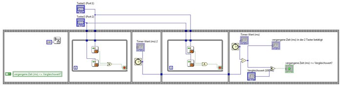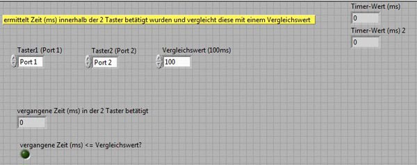 - SubVI ermittelt Zeit innerhalb der Taster S1 und S2 betätigt wurde