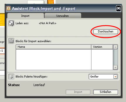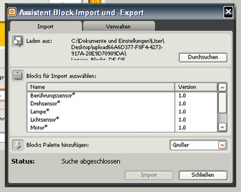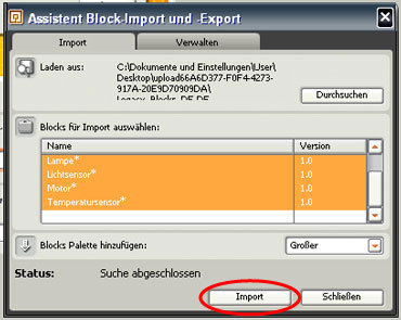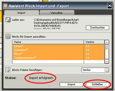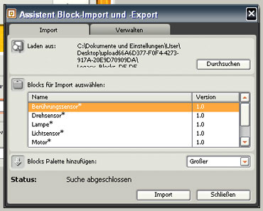 Hinweis: "Blocks Palette hinzufügen:" gibt an wo die Blöcke später zu finden sind.