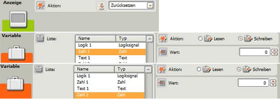 - Damit sichergestellt ist, das die Variablen keinen anderen Inhalt haben, werden "Zahl 1" und "Zahl 2" auf den Wert "0" gesetzt.