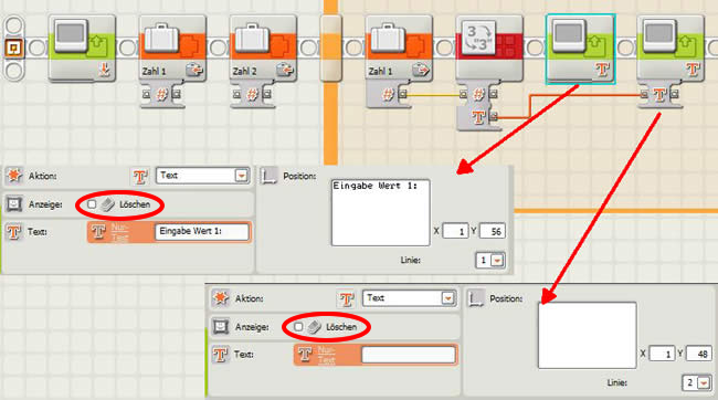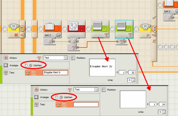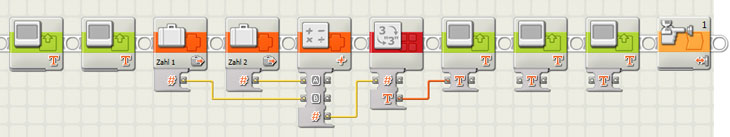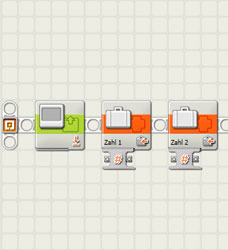 - Inhalt von "Zahl 2" wird in einen Text umgewandelt, damit er auf dem NXT- Display angezeigt werden kann