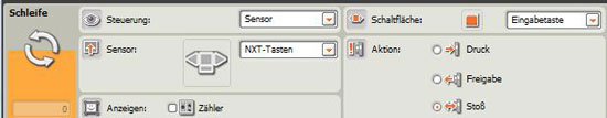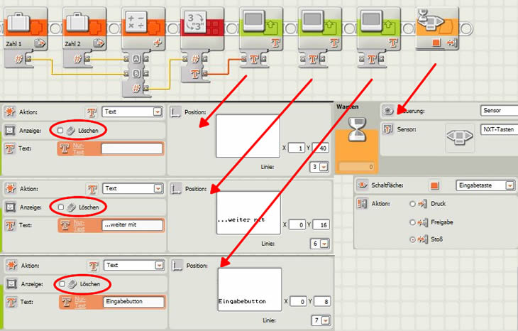 "Eingabebutton" (Zeile 7) - Anzeige auf dem NXT- Display erscheint so lange, bis die Eingabetaste auf dem NXT betätigt und wieder los gelassen wird.