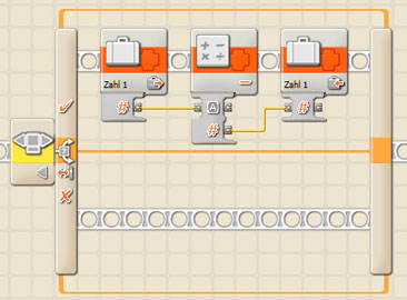 - Wird der linke Button auf dem NXT betätigt, wird der Wert von "Zahl 1" um eins verringert