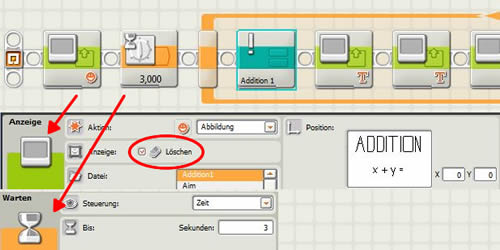 - Beim Programmstart wird auf dem NXT- Display für 3 Sekunden die Grafik "Addition1" angezeigt