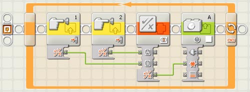 Steuerung: Unendlich (Endlosschleife wird so lange wiederholt bis die Stop Taste auf dem nxt gedrückt wird.) - Berührungssensor 1: