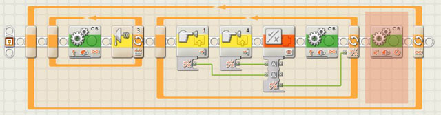 - Klang Block --> es wird "Object Detected" gesagt - äußere Schleife: Programm wird endlos wiederholt und kann beendet werden in dem auf dem nxt die Stop Taste (dunkel graue Taste) betätigt wird.